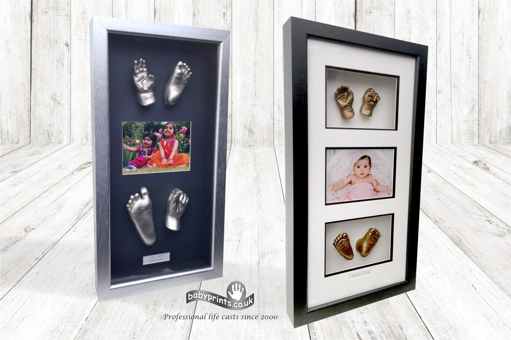 From framed baby hand prints and foot prints to stand-alone hand and foot metal cast statues – we have something to suit every occasion and budget. Each babyprint is unique – and you get a vast array of framing colour combinations to choose from. Babyprints make a perfect gift for proud new parents and grandparents alike.
